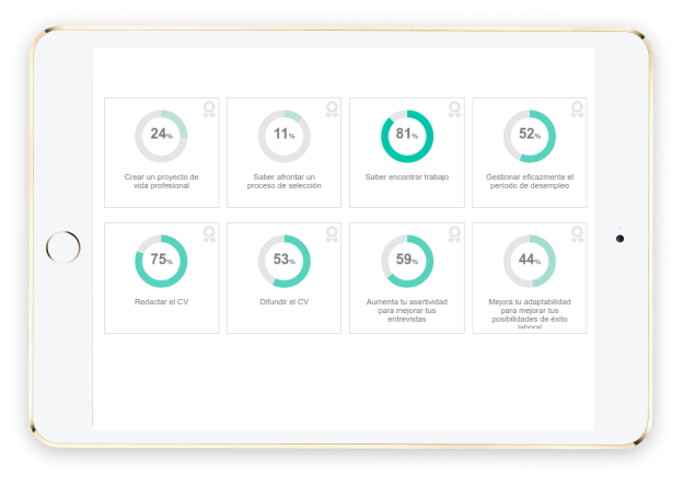 Tras definir los objetivos a lograr, el sistema recomienda un itinerario personalizado (PDI) para el desarrollo de las habilidades necesarias que permitirán alcanzarlos.
